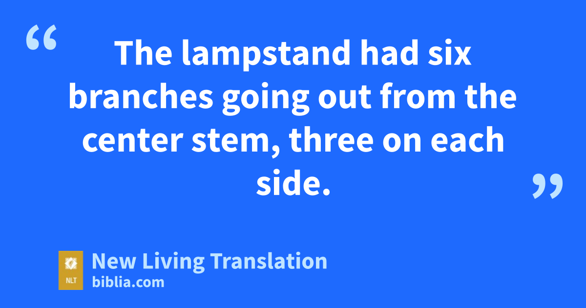17 Then Bezalel made the lampstand of pure, hammered gold. He made the entire lampstand and its decorations of one piece—the base, center stem, lamp cups, buds, and petals. 18 The lampstand had six branches going out from the center stem, three on each side. 19 Each of the six branches had three lamp cups shaped like almond blossoms, complete with buds and petals. 20 The center stem of the lampstand was crafted with four lamp cups shaped like almond blossoms, complete with buds and petals. 21 There was an almond bud beneath each pair of branches where the six branches extended from the center stem, all made of one piece. 22 The almond buds and branches were all of one piece with the center stem, and they were hammered from pure gold.