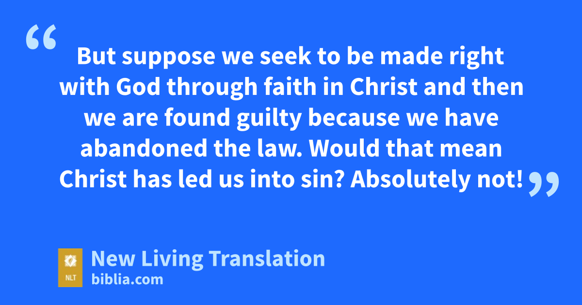 17 But suppose we seek to be made right with God through faith in Christ and then we are found guilty because we have abandoned the law. Would that mean Christ has led us into sin? Absolutely not! 18 Rather, I am a sinner if I rebuild the old system of law I already tore down. 19 For when I tried to keep the law, it condemned me. So I died to the law—I stopped trying to meet all its requirements—so that I might live for God. 20 My old self has been crucified with Christ.* It is no longer I who live, but Christ lives in me. So I live in this earthly body by trusting in the Son of God, who loved me and gave himself for me. 21 I do not treat the grace of God as meaningless. For if keeping the law could make us right with God, then there was no need for Christ to die.