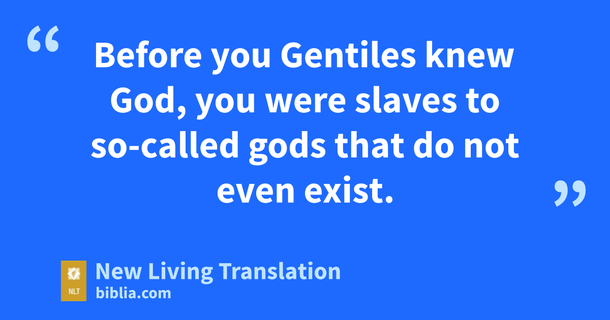 8 Before you Gentiles knew God, you were slaves to so-called gods that do not even exist. 9 So now that you know God (or should I say, now that God knows you), why do you want to go back again and become slaves once more to the weak and useless spiritual principles of this world? 10 You are trying to earn favor with God by observing certain days or months or seasons or years. 11 I fear for you. Perhaps all my hard work with you was for nothing. 12 Dear brothers and sisters,* I plead with you to live as I do in freedom from these things, for I have become like you Gentiles—free from those laws.