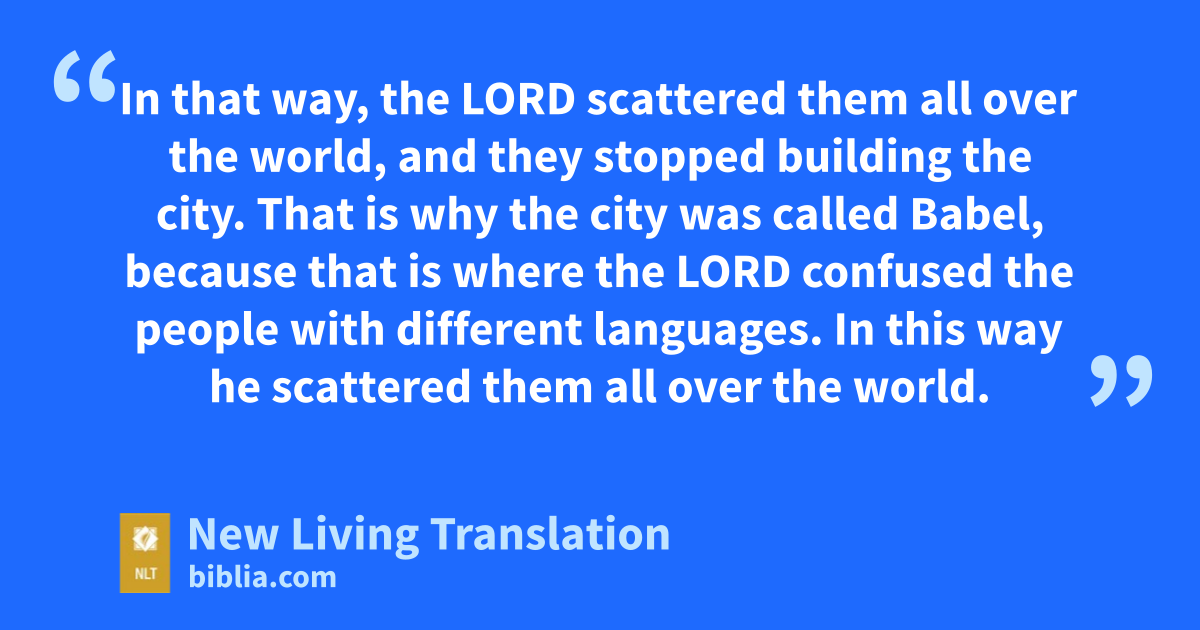 8 In that way, the Lord scattered them all over the world, and they stopped building the city. 9 That is why the city was called Babel,* because that is where the Lord confused the people with different languages. In this way he scattered them all over the world.