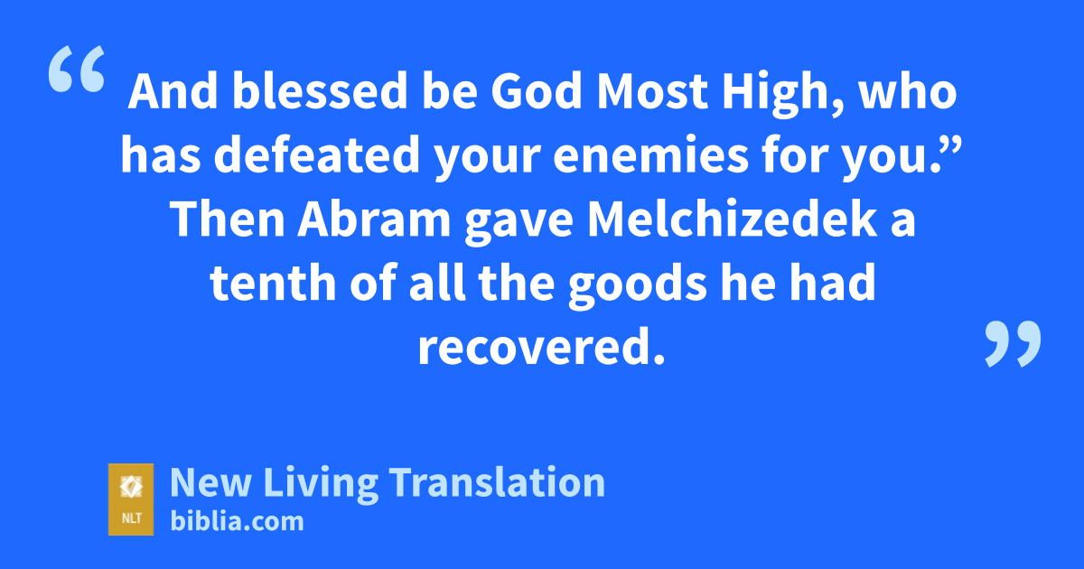 18 And Melchizedek, the king of Salem and a priest of God Most High,* brought Abram some bread and wine. 19 Melchizedek blessed Abram with this blessing: