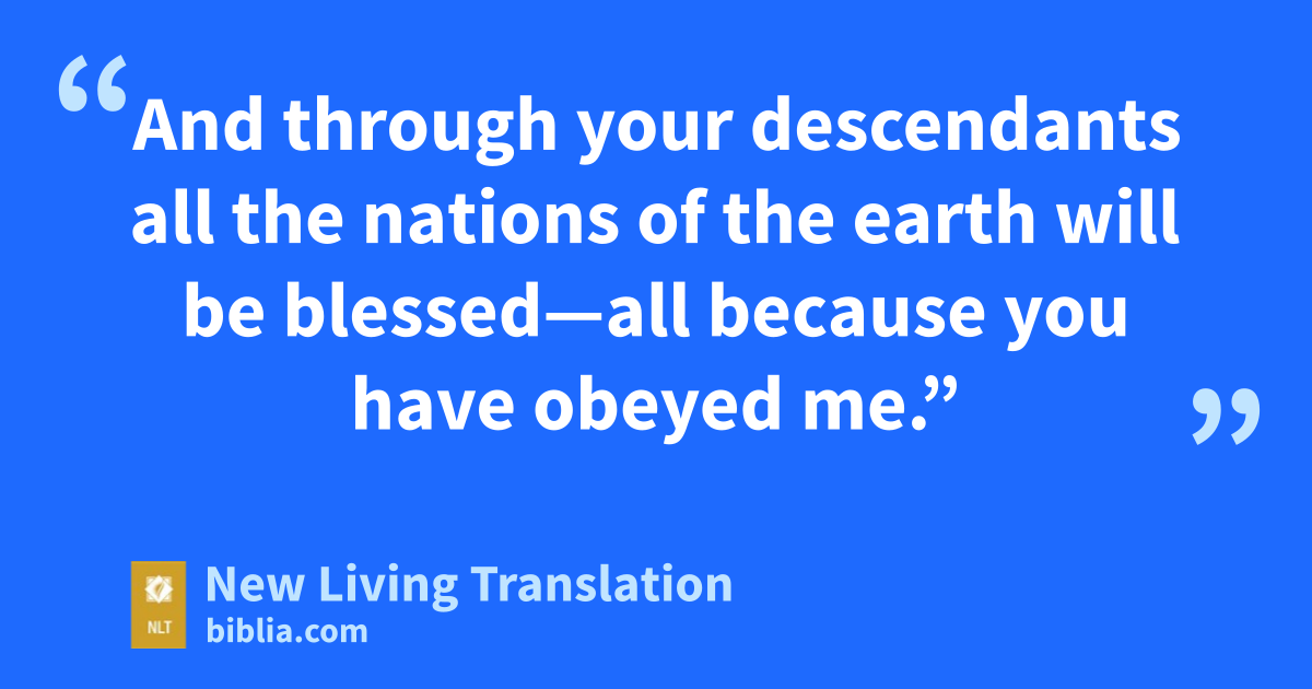 15 Then the angel of the Lord called again to Abraham from heaven. 16 “This is what the Lord says: Because you have obeyed me and have not withheld even your son, your only son, I swear by my own name that 17 I will certainly bless you. I will multiply your descendants* beyond number, like the stars in the sky and the sand on the seashore. Your descendants will conquer the cities of their enemies. 18 And through your descendants all the nations of the earth will be blessed—all because you have obeyed me.”