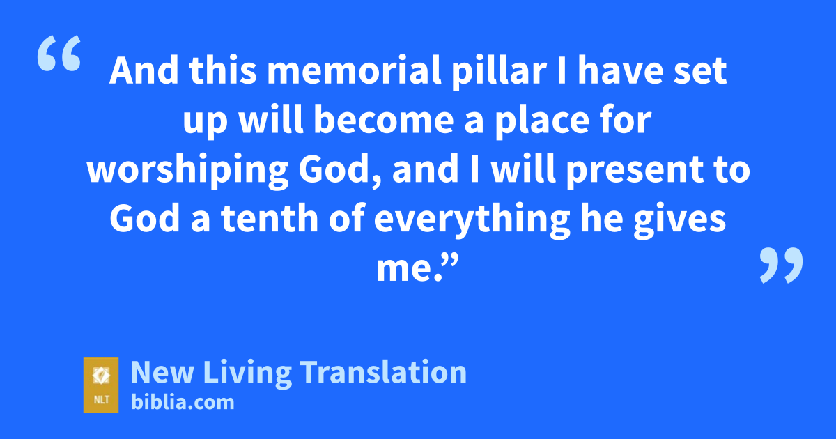 20 Then Jacob made this vow: “If God will indeed be with me and protect me on this journey, and if he will provide me with food and clothing, 21 and if I return safely to my father’s home, then the Lord will certainly be my God. 22 And this memorial pillar I have set up will become a place for worshiping God, and I will present to God a tenth of everything he gives me.”