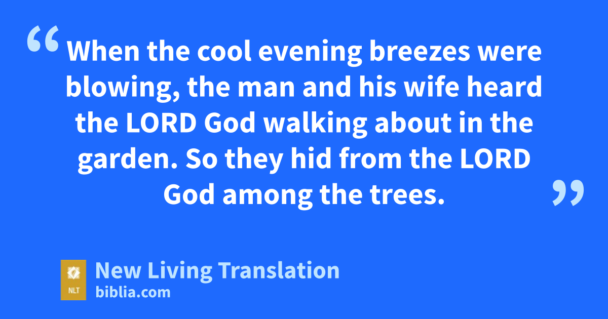 8 When the cool evening breezes were blowing, the man* and his wife heard the Lord God walking about in the garden. So they hid from the Lord God among the trees. 9 Then the Lord God called to the man, “Where are you?”