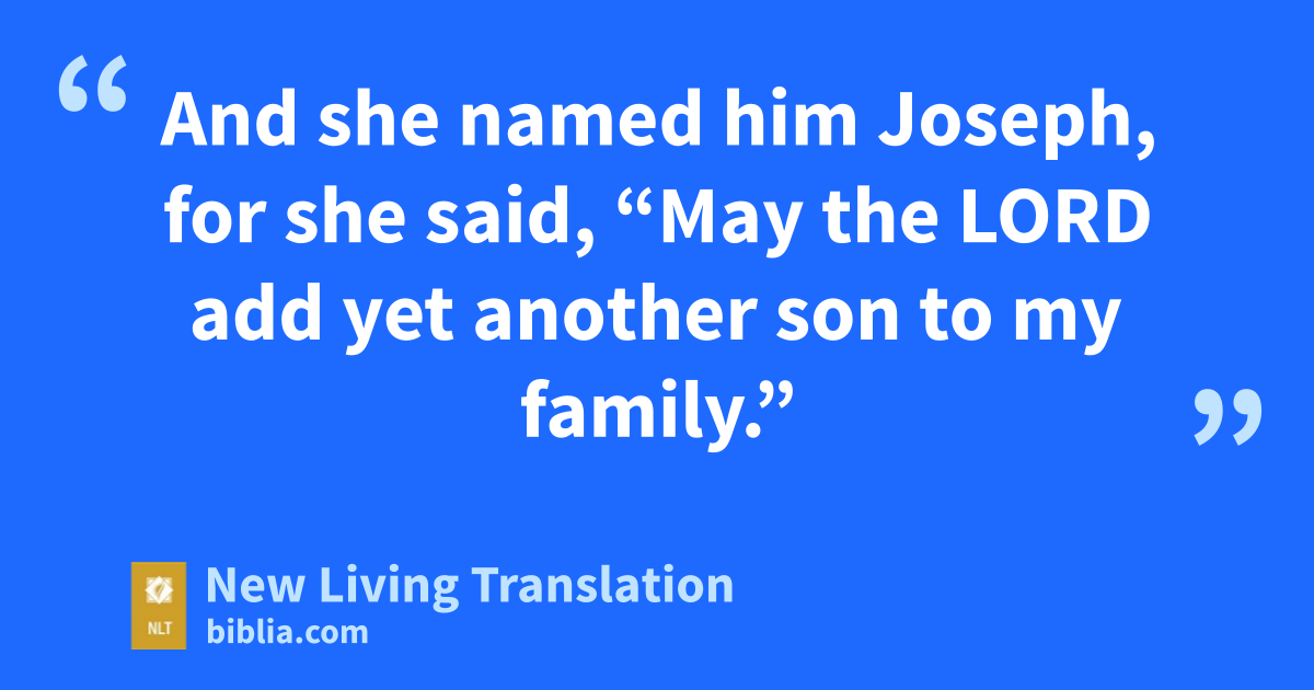 22 Then God remembered Rachel’s plight and answered her prayers by enabling her to have children. 23 She became pregnant and gave birth to a son. “God has removed my disgrace,” she said. 24 And she named him Joseph,* for she said, “May the Lord add yet another son to my family.”