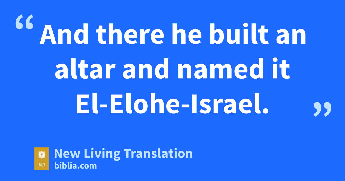 18 Later, having traveled all the way from Paddan-aram, Jacob arrived safely at the town of Shechem, in the land of Canaan. There he set up camp outside the town. 19 Jacob bought the plot of land where he camped from the family of Hamor, the father of Shechem, for 100 pieces of silver.* 20 And there he built an altar and named it El-Elohe-Israel.*