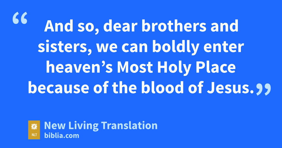 19 And so, dear brothers and sisters,* we can boldly enter heaven’s Most Holy Place because of the blood of Jesus. 20 By his death,* Jesus opened a new and life-giving way through the curtain into the Most Holy Place. 21 And since we have a great High Priest who rules over God’s house, 22 let us go right into the presence of God with sincere hearts fully trusting him. For our guilty consciences have been sprinkled with Christ’s blood to make us clean, and our bodies have been washed with pure water.