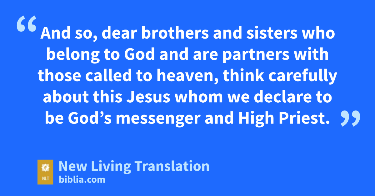 And so, dear brothers and sisters who belong to God and* are partners with those called to heaven, think carefully about this Jesus whom we declare to be God’s messenger* and High Priest. 2 For he was faithful to God, who appointed him, just as Moses served faithfully when he was entrusted with God’s entire* house.