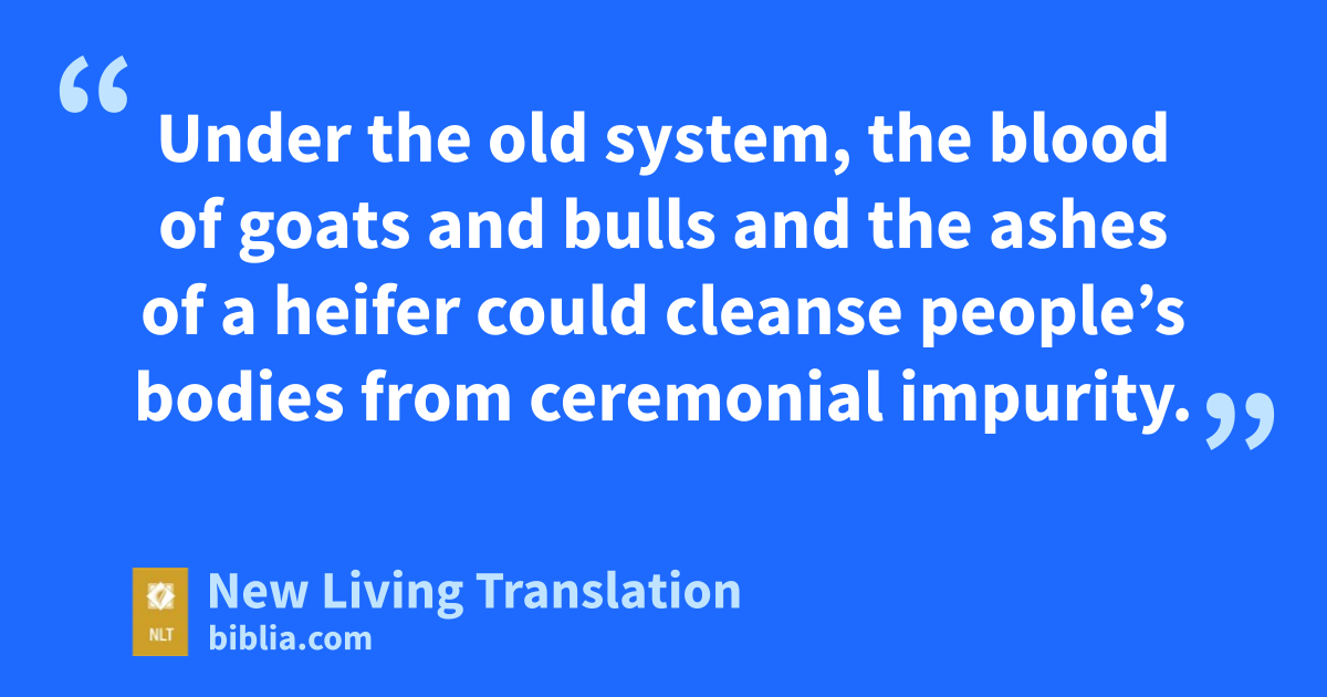 13 Under the old system, the blood of goats and bulls and the ashes of a heifer could cleanse people’s bodies from ceremonial impurity. 14 Just think how much more the blood of Christ will purify our consciences from sinful deeds* so that we can worship the living God. For by the power of the eternal Spirit, Christ offered himself to God as a perfect sacrifice for our sins. 15 That is why he is the one who mediates a new covenant between God and people, so that all who are called can receive the eternal inheritance God has promised them. For Christ died to set them free from the penalty of the sins they had committed under that first covenant.