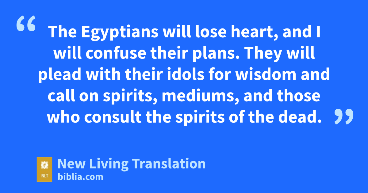 19 In that day there will be an altar to the Lord in the heart of Egypt, and there will be a monument to the Lord at its border. 20 It will be a sign and a witness that the Lord of Heaven’s Armies is worshiped in the land of Egypt. When the people cry to the Lord for help against those who oppress them, he will send them a savior who will rescue them. 21 The Lord will make himself known to the Egyptians. Yes, they will know the Lord and will give their sacrifices and offerings to him. They will make a vow to the Lord and will keep it. 22 The Lord will strike Egypt, and then he will bring healing. For the Egyptians will turn to the Lord, and he will listen to their pleas and heal them.