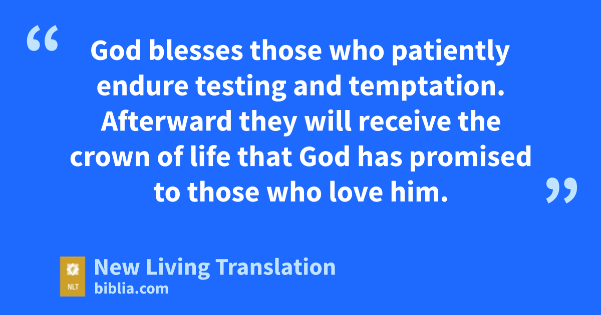 12 God blesses those who patiently endure testing and temptation. Afterward they will receive the crown of life that God has promised to those who love him. 13 And remember, when you are being tempted, do not say, “God is tempting me.” God is never tempted to do wrong,* and he never tempts anyone else. 14 Temptation comes from our own desires, which entice us and drag us away. 15 These desires give birth to sinful actions. And when sin is allowed to grow, it gives birth to death.