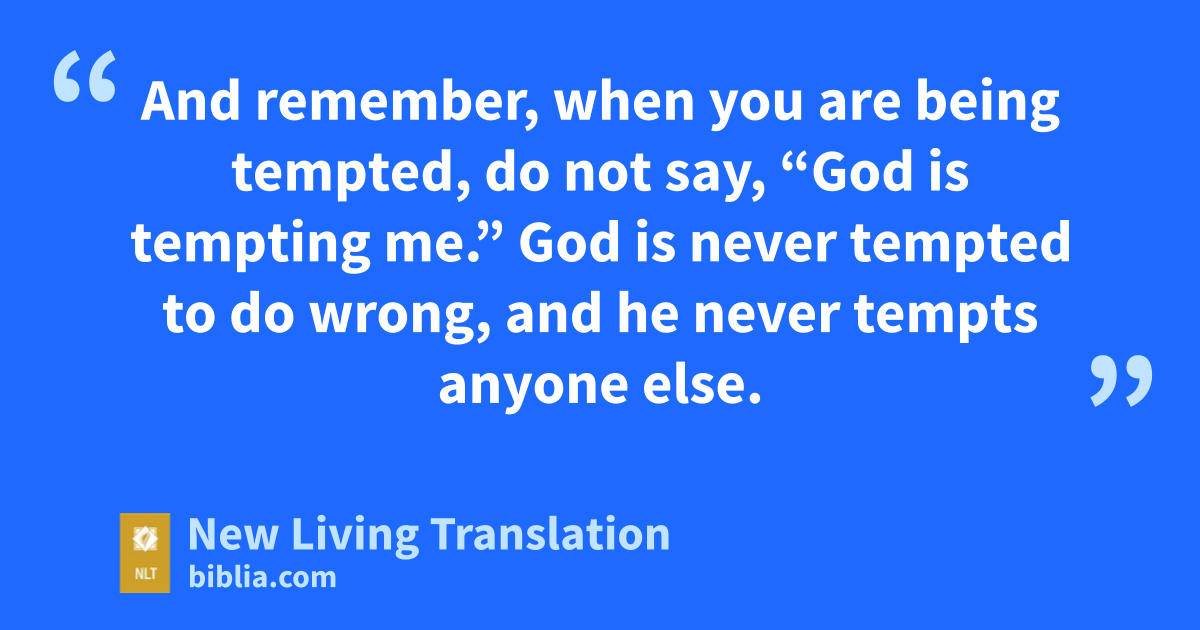 12 God blesses those who patiently endure testing and temptation. Afterward they will receive the crown of life that God has promised to those who love him. 13 And remember, when you are being tempted, do not say, “God is tempting me.” God is never tempted to do wrong,* and he never tempts anyone else. 14 Temptation comes from our own desires, which entice us and drag us away. 15 These desires give birth to sinful actions. And when sin is allowed to grow, it gives birth to death.
