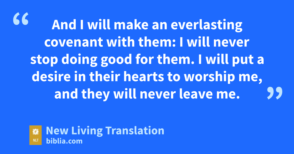 36 “Now I want to say something more about this city. You have been saying, ‘It will fall to the king of Babylon through war, famine, and disease.’ But this is what the Lord, the God of Israel, says: 37 I will certainly bring my people back again from all the countries where I will scatter them in my fury. I will bring them back to this very city and let them live in peace and safety. 38 They will be my people, and I will be their God. 39 And I will give them one heart and one purpose: to worship me forever, for their own good and for the good of all their descendants. 40 And I will make an everlasting covenant with them: I will never stop doing good for them. I will put a desire in their hearts to worship me, and they will never leave me. 41 I will find joy doing good for them and will faithfully and wholeheartedly replant them in this land.
