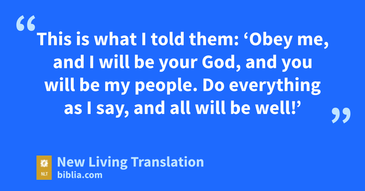21 This is what the Lord of Heaven’s Armies, the God of Israel, says: “Take your burnt offerings and your other sacrifices and eat them yourselves! 22 When I led your ancestors out of Egypt, it was not burnt offerings and sacrifices I wanted from them. 23 This is what I told them: ‘Obey me, and I will be your God, and you will be my people. Do everything as I say, and all will be well!’