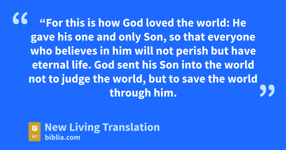 16 “For this is how God loved the world: He gave* his one and only Son, so that everyone who believes in him will not perish but have eternal life. 17 God sent his Son into the world not to judge the world, but to save the world through him.