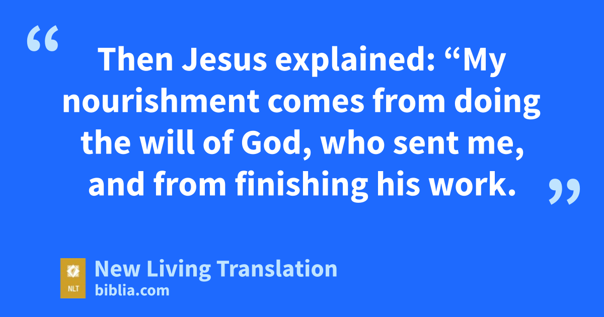 34 Then Jesus explained: “My nourishment comes from doing the will of God, who sent me, and from finishing his work. 35 You know the saying, ‘Four months between planting and harvest.’ But I say, wake up and look around. The fields are already ripe* for harvest. 36 The harvesters are paid good wages, and the fruit they harvest is people brought to eternal life. What joy awaits both the planter and the harvester alike! 37 You know the saying, ‘One plants and another harvests.’ And it’s true. 38 I sent you to harvest where you didn’t plant; others had already done the work, and now you will get to gather the harvest.”