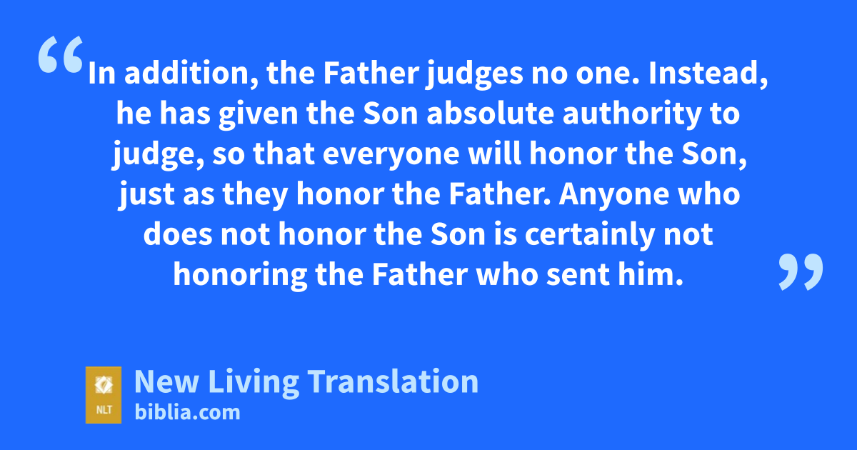 19 So Jesus explained, “I tell you the truth, the Son can do nothing by himself. He does only what he sees the Father doing. Whatever the Father does, the Son also does. 20 For the Father loves the Son and shows him everything he is doing. In fact, the Father will show him how to do even greater works than healing this man. Then you will truly be astonished. 21 For just as the Father gives life to those he raises from the dead, so the Son gives life to anyone he wants. 22 In addition, the Father judges no one. Instead, he has given the Son absolute authority to judge, 23 so that everyone will honor the Son, just as they honor the Father. Anyone who does not honor the Son is certainly not honoring the Father who sent him.