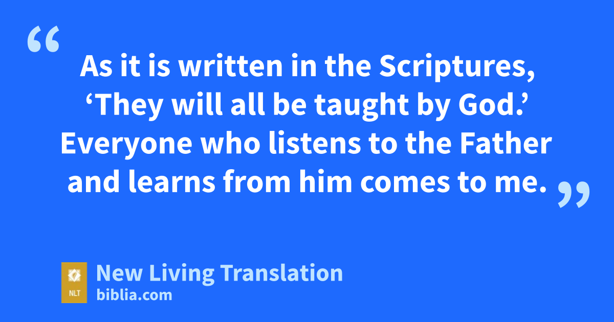 43 But Jesus replied, “Stop complaining about what I said. 44 For no one can come to me unless the Father who sent me draws them to me, and at the last day I will raise them up. 45 As it is written in the Scriptures,* ‘They will all be taught by God.’ Everyone who listens to the Father and learns from him comes to me. 46 (Not that anyone has ever seen the Father; only I, who was sent from God, have seen him.)