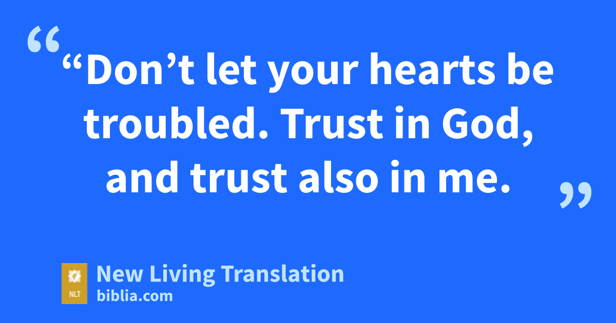 “Don’t let your hearts be troubled. Trust in God, and trust also in me. 2 There is more than enough room in my Father’s home.* If this were not so, would I have told you that I am going to prepare a place for you?* 3 When everything is ready, I will come and get you, so that you will always be with me where I am. 4 And you know the way to where I am going.”