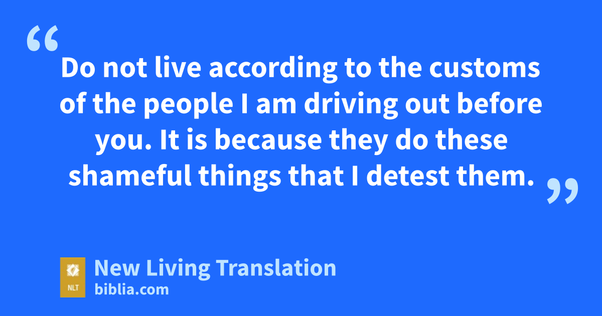 22 “You must keep all my decrees and regulations by putting them into practice; otherwise the land to which I am bringing you as your new home will vomit you out. 23 Do not live according to the customs of the people I am driving out before you. It is because they do these shameful things that I detest them. 24 But I have promised you, ‘You will possess their land because I will give it to you as your possession—a land flowing with milk and honey.’ I am the Lord your God, who has set you apart from all other people.