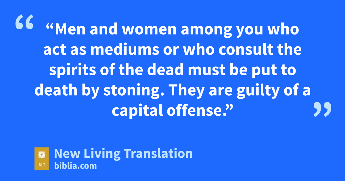 27 “Men and women among you who act as mediums or who consult the spirits of the dead must be put to death by stoning. They are guilty of a capital offense.”