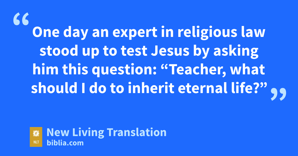 25 One day an expert in religious law stood up to test Jesus by asking him this question: “Teacher, what should I do to inherit eternal life?”