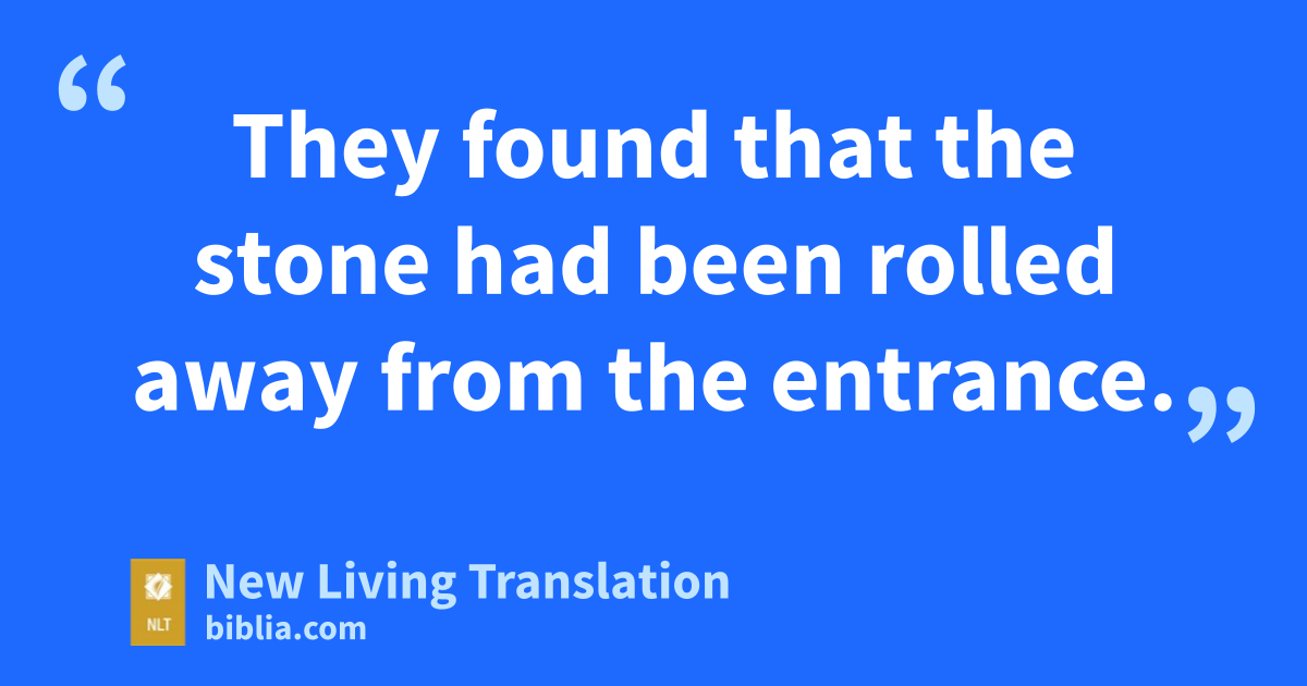 But very early on Sunday morning* the women went to the tomb, taking the spices they had prepared. 2 They found that the stone had been rolled away from the entrance. 3 So they went in, but they didn’t find the body of the Lord Jesus. 4 As they stood there puzzled, two men suddenly appeared to them, clothed in dazzling robes.