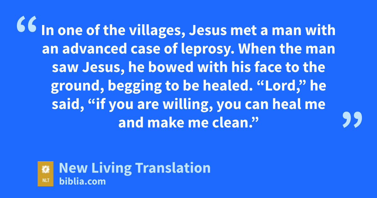 12 In one of the villages, Jesus met a man with an advanced case of leprosy. When the man saw Jesus, he bowed with his face to the ground, begging to be healed. “Lord,” he said, “if you are willing, you can heal me and make me clean.”