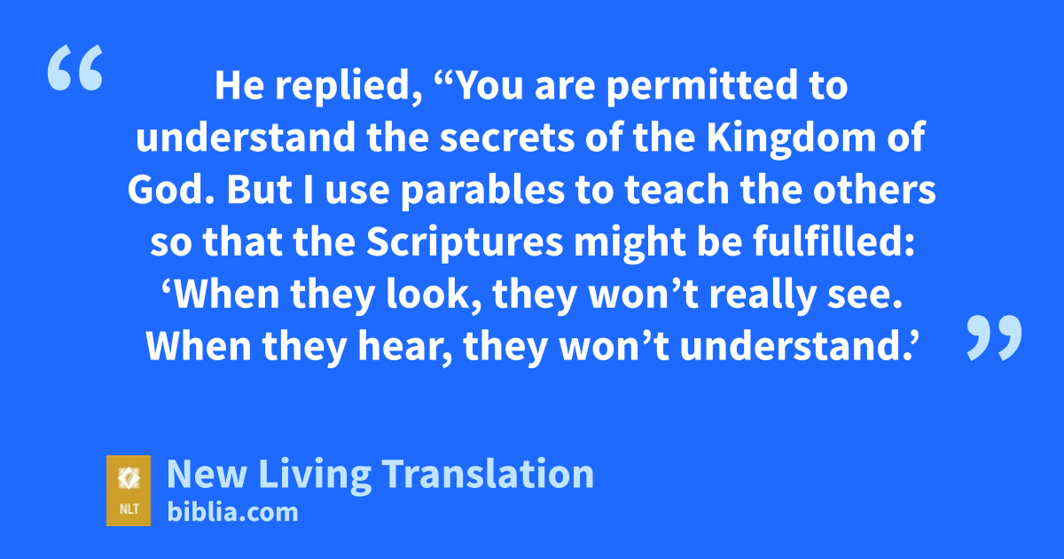 9 His disciples asked him what this parable meant. 10 He replied, “You are permitted to understand the secrets* of the Kingdom of God. But I use parables to teach the others so that the Scriptures might be fulfilled: