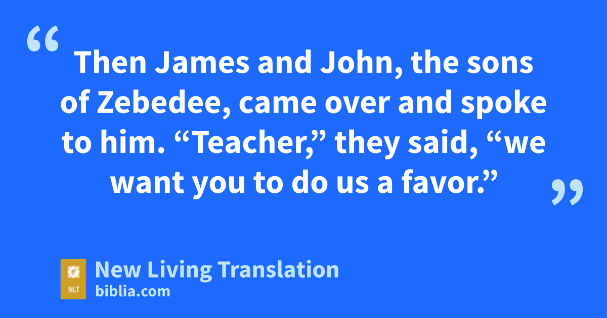 35 Then James and John, the sons of Zebedee, came over and spoke to him. “Teacher,” they said, “we want you to do us a favor.”