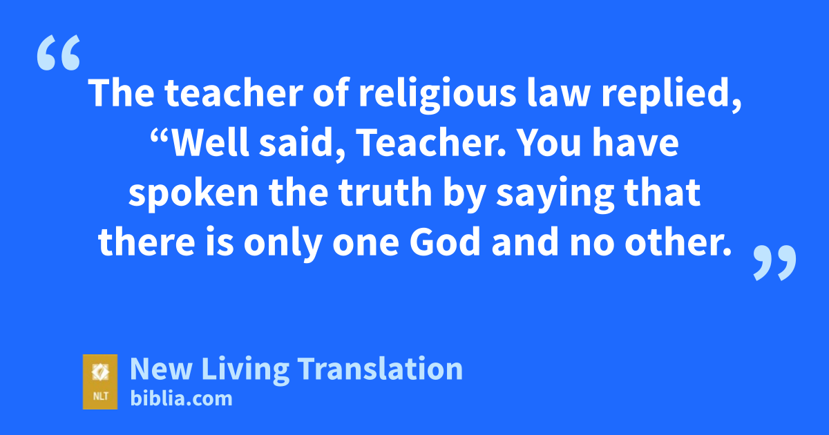 32 The teacher of religious law replied, “Well said, Teacher. You have spoken the truth by saying that there is only one God and no other. 33 And I know it is important to love him with all my heart and all my understanding and all my strength, and to love my neighbor as myself. This is more important than to offer all of the burnt offerings and sacrifices required in the law.”