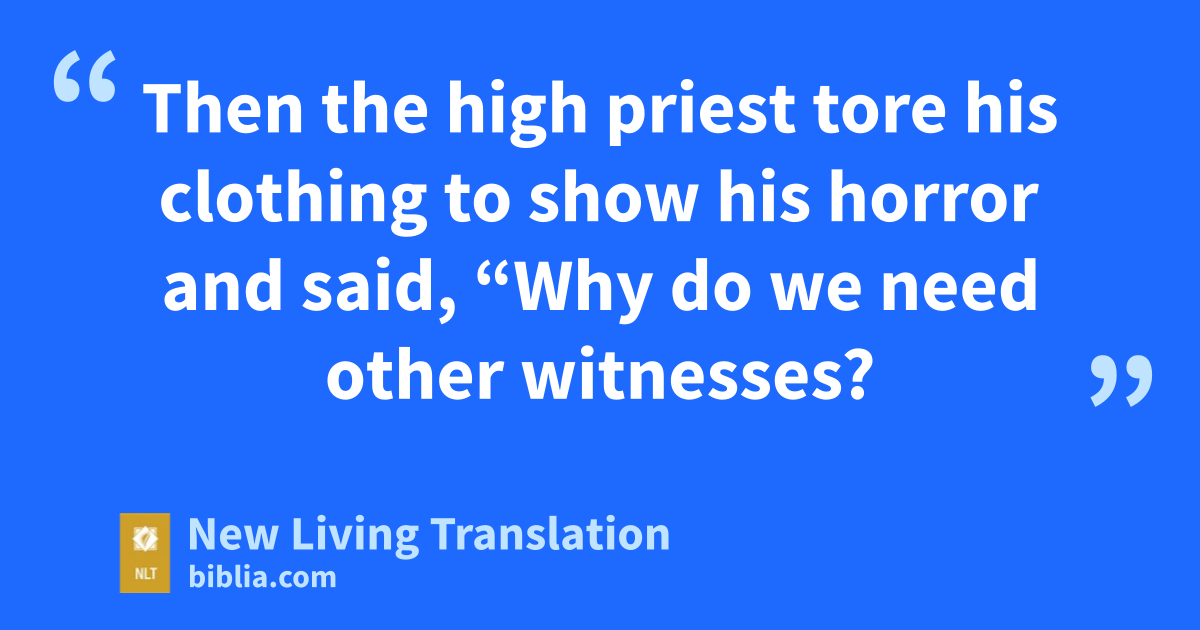 63 Then the high priest tore his clothing to show his horror and said, “Why do we need other witnesses? 64 You have all heard his blasphemy. What is your verdict?”
