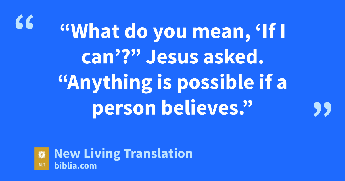 23 “What do you mean, ‘If I can’?” Jesus asked. “Anything is possible if a person believes.”