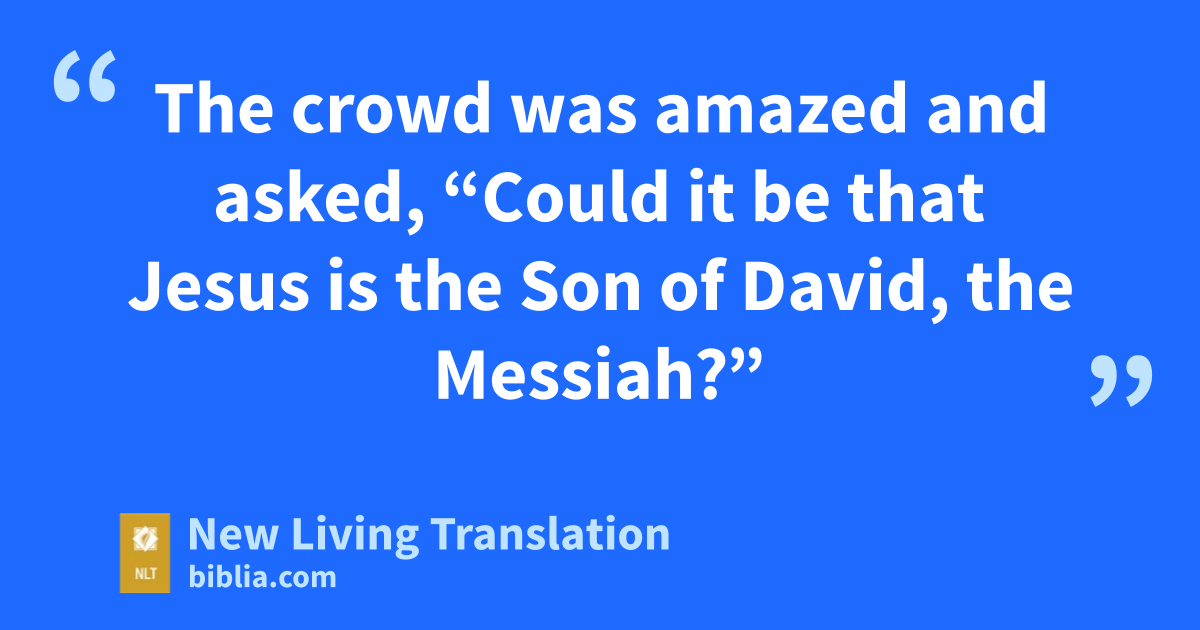 22 Then a demon-possessed man, who was blind and couldn’t speak, was brought to Jesus. He healed the man so that he could both speak and see. 23 The crowd was amazed and asked, “Could it be that Jesus is the Son of David, the Messiah?”