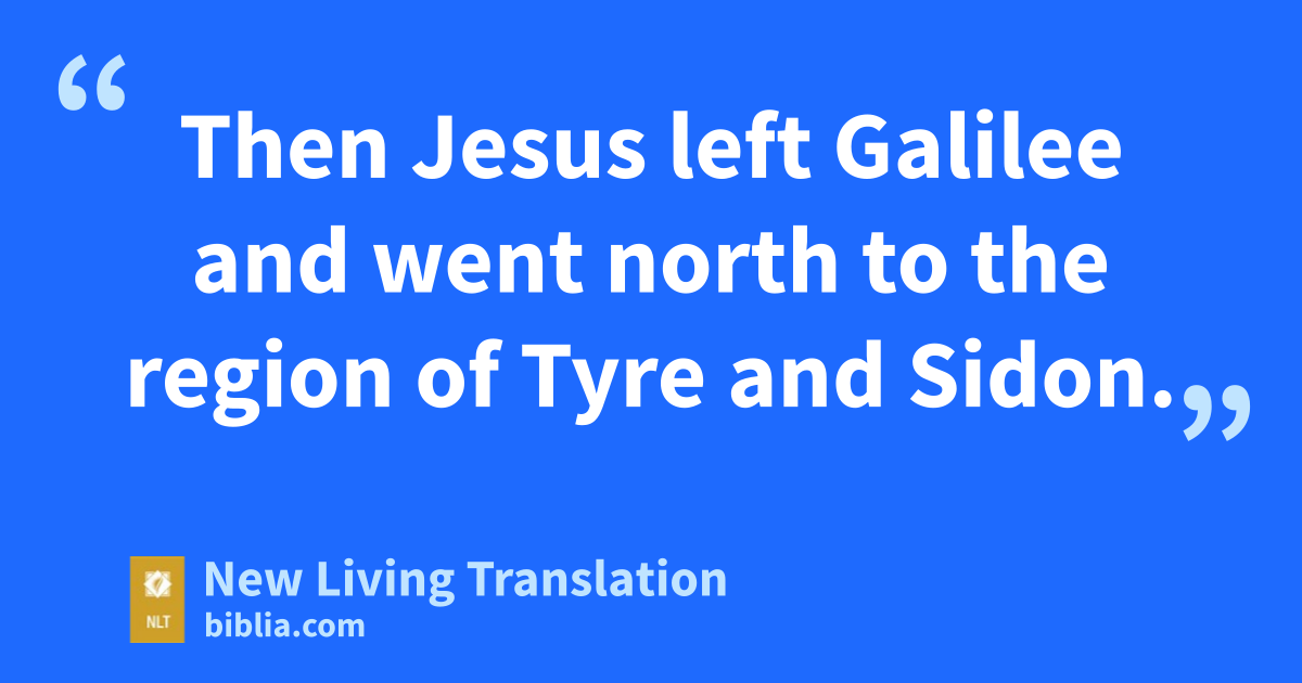 21 Then Jesus left Galilee and went north to the region of Tyre and Sidon. 22 A Gentile* woman who lived there came to him, pleading, “Have mercy on me, O Lord, Son of David! For my daughter is possessed by a demon that torments her severely.”