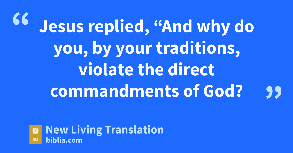 3 Jesus replied, “And why do you, by your traditions, violate the direct commandments of God? 4 For instance, God says, ‘Honor your father and mother,’* and ‘Anyone who speaks disrespectfully of father or mother must be put to death.’* 5 But you say it is all right for people to say to their parents, ‘Sorry, I can’t help you. For I have vowed to give to God what I would have given to you.’ 6 In this way, you say they don’t need to honor their parents.* And so you cancel the word of God for the sake of your own tradition. 7 You hypocrites! Isaiah was right when he prophesied about you, for he wrote,