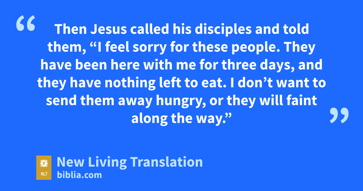 32 Then Jesus called his disciples and told them, “I feel sorry for these people. They have been here with me for three days, and they have nothing left to eat. I don’t want to send them away hungry, or they will faint along the way.”