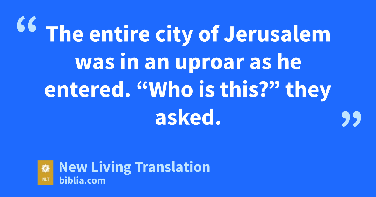 10 The entire city of Jerusalem was in an uproar as he entered. “Who is this?” they asked.