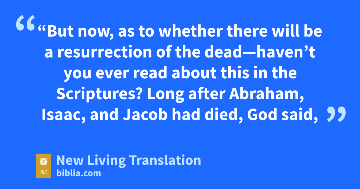 31 “But now, as to whether there will be a resurrection of the dead—haven’t you ever read about this in the Scriptures? Long after Abraham, Isaac, and Jacob had died, God said,* 32 ‘I am the God of Abraham, the God of Isaac, and the God of Jacob.’* So he is the God of the living, not the dead.”