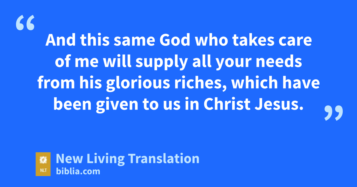 18 At the moment I have all I need—and more! I am generously supplied with the gifts you sent me with Epaphroditus. They are a sweet-smelling sacrifice that is acceptable and pleasing to God. 19 And this same God who takes care of me will supply all your needs from his glorious riches, which have been given to us in Christ Jesus.
