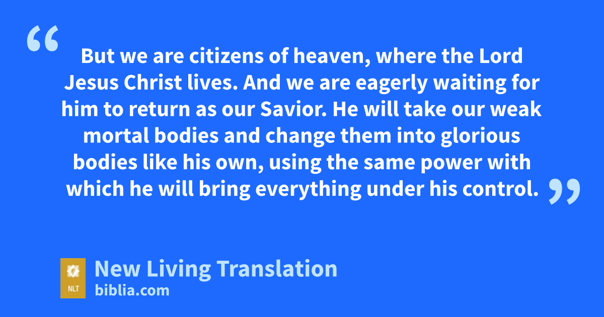 17 Dear brothers and sisters, pattern your lives after mine, and learn from those who follow our example. 18 For I have told you often before, and I say it again with tears in my eyes, that there are many whose conduct shows they are really enemies of the cross of Christ. 19 They are headed for destruction. Their god is their appetite, they brag about shameful things, and they think only about this life here on earth. 20 But we are citizens of heaven, where the Lord Jesus Christ lives. And we are eagerly waiting for him to return as our Savior. 21 He will take our weak mortal bodies and change them into glorious bodies like his own, using the same power with which he will bring everything under his control.