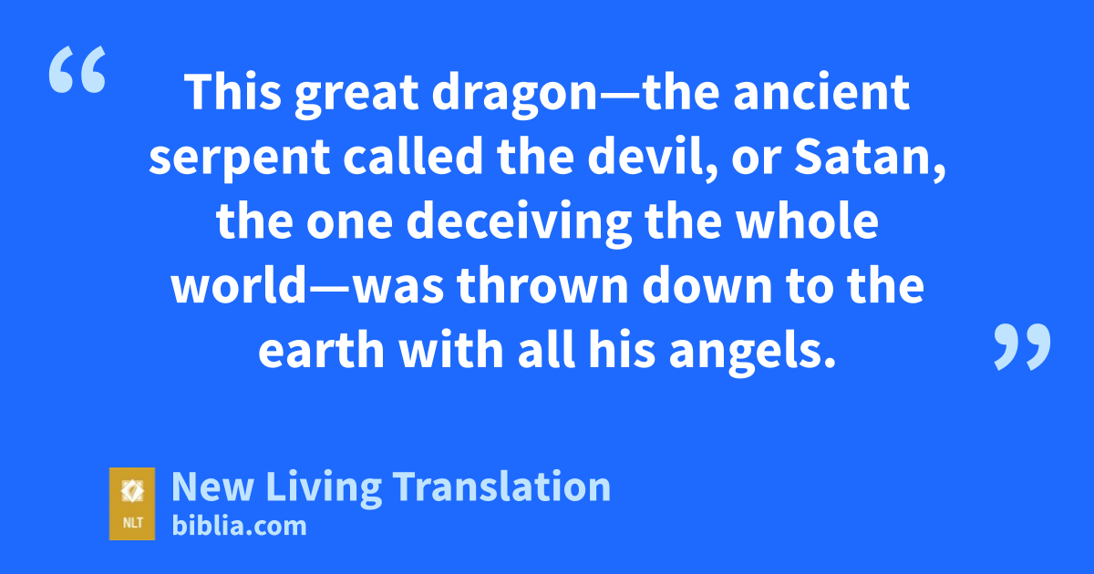 7 Then there was war in heaven. Michael and his angels fought against the dragon and his angels. 8 And the dragon lost the battle, and he and his angels were forced out of heaven. 9 This great dragon—the ancient serpent called the devil, or Satan, the one deceiving the whole world—was thrown down to the earth with all his angels.