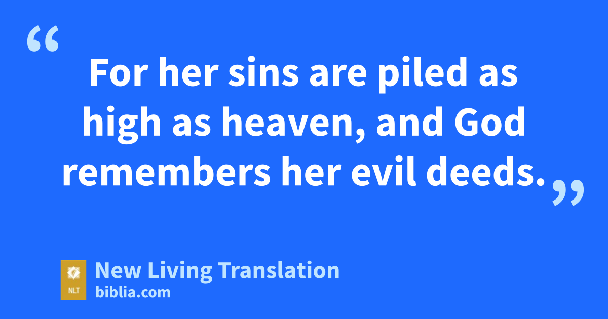 5 For her sins are piled as high as heaven,