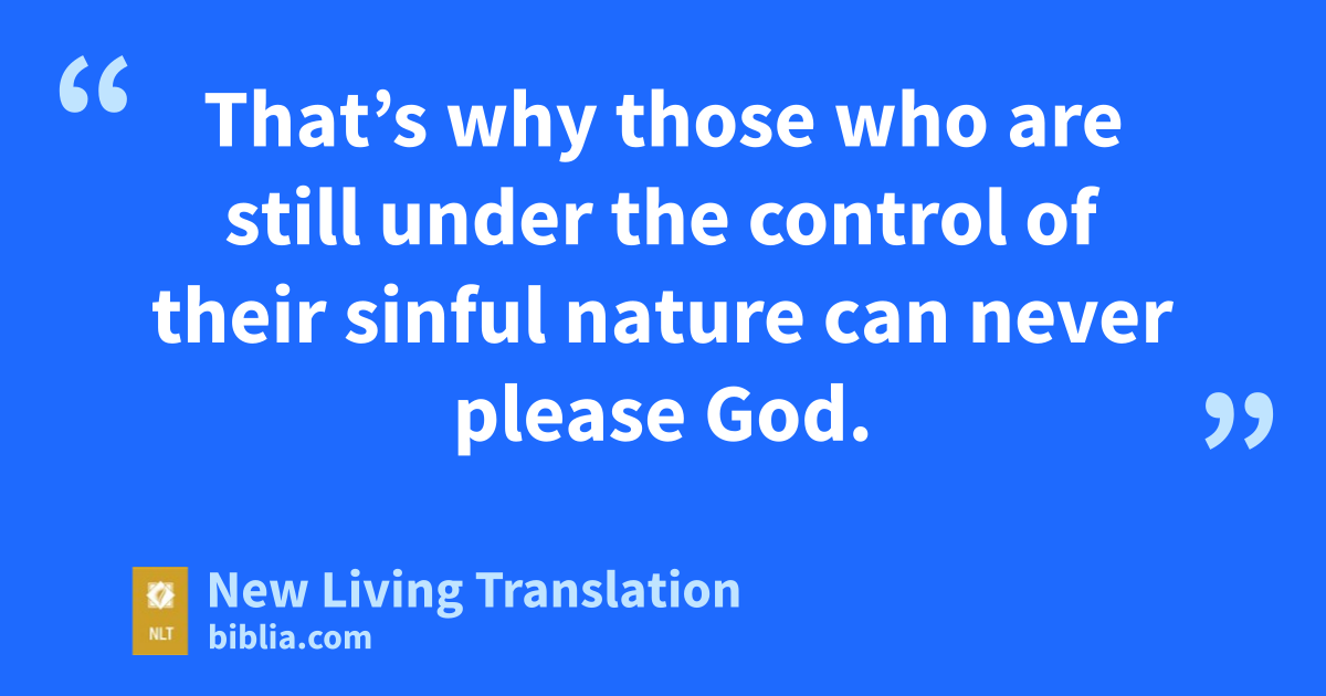 5 Those who are dominated by the sinful nature think about sinful things, but those who are controlled by the Holy Spirit think about things that please the Spirit. 6 So letting your sinful nature control your mind leads to death. But letting the Spirit control your mind leads to life and peace. 7 For the sinful nature is always hostile to God. It never did obey God’s laws, and it never will. 8 That’s why those who are still under the control of their sinful nature can never please God.