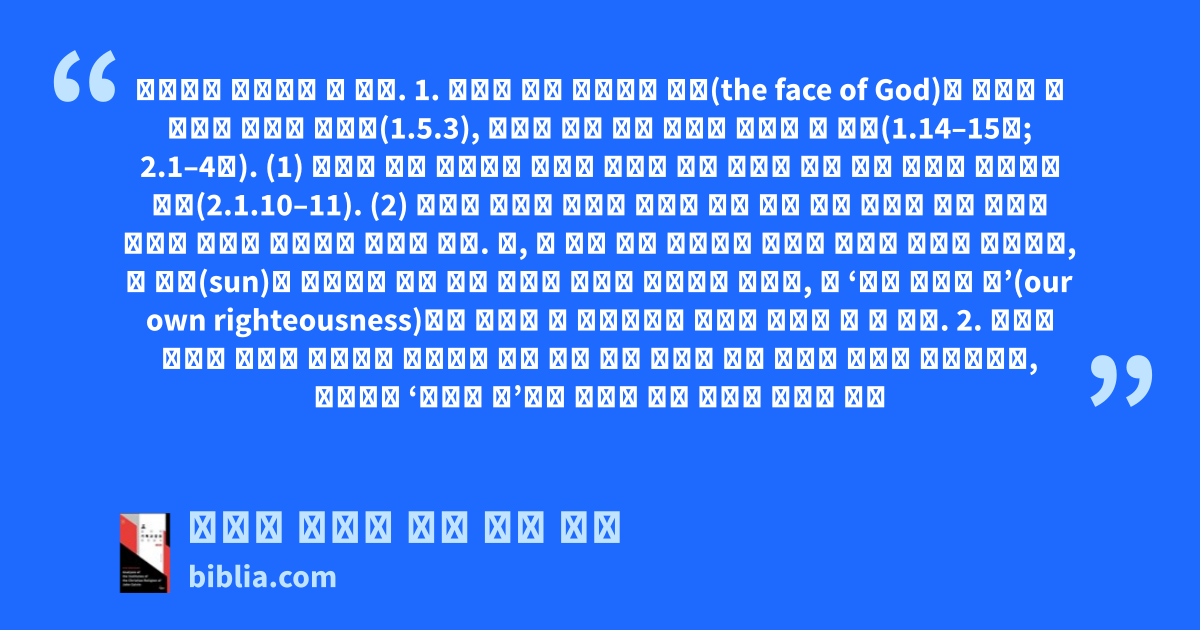하나님을 발견하게 해 준다. 1. 인간은 먼저 하나님의 얼굴(the face of God)을 응시한 후 자신을 검토할 때에만(1.5.3), 자신을 아는 참된 지식에 도달할 수 있다(1.14–15장; 2.1–4장). (1) 우리는 본래 위선으로 치우쳐 있어서 자기 자신을 높게 보는 교만에 사로잡혀 있다(2.1.10–11). (2) 우리는 영혼의 능력을 평가할 때도 크게 속고 있다는 것을 육체의 감각을 통하여 명백하게 깨닫게 된다. 즉, ① 땅에 속한 사물만을 본다면 시력에 문제가 없겠지만, ② 태양(sun)을 쳐다보게 되면 눈이 부시고 혼란을 일으키는 것처럼, ③ ‘우리 자신의 의’(our own righteousness)라는 가면을 쓴 상태로서는 자신을 참되게 알 수 없다. 2. 그러나 우리의 생각을 하나님의 속성으로 돌려 그의 절대 완전한 의와 지혜와 권능을 생각한다면, 지금까지 ‘자기의 의’라는 가면을 쓰고 우리를 즐겁게 하던