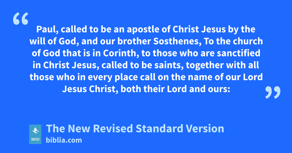 Paul, called to be an apostle of Christ Jesus by the will of God, and our brother Sosthenes, To the church of God that is in Corinth, to those who are sanctified in Christ Jesus, called to be saints, together with all those who in every place call on the name of our Lord Jesus Christ, both their Lord and ours: