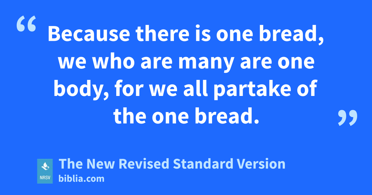 Because there is one bread, we who are many are one body, for we all partake of the one bread.