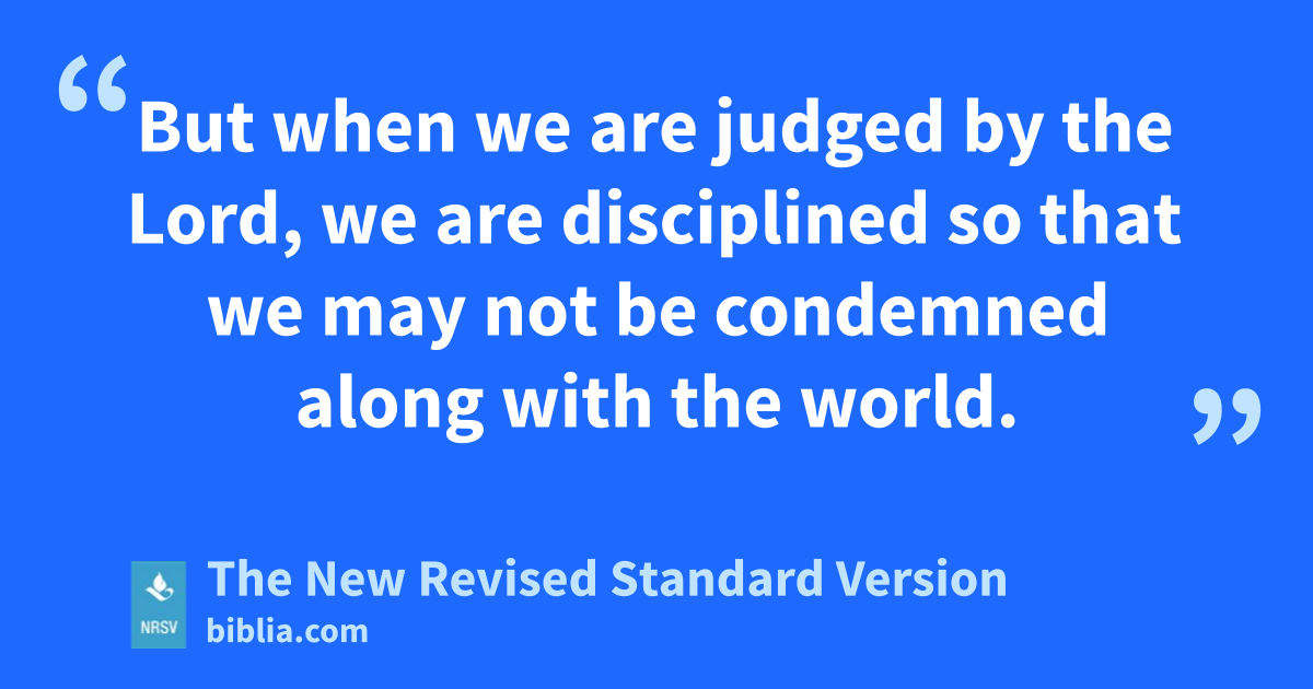 But when we are judged by the Lord, we are disciplined so that we may not be condemned along with the world.