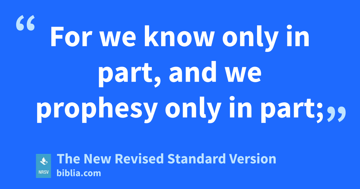 For we know only in part, and we prophesy only in part;