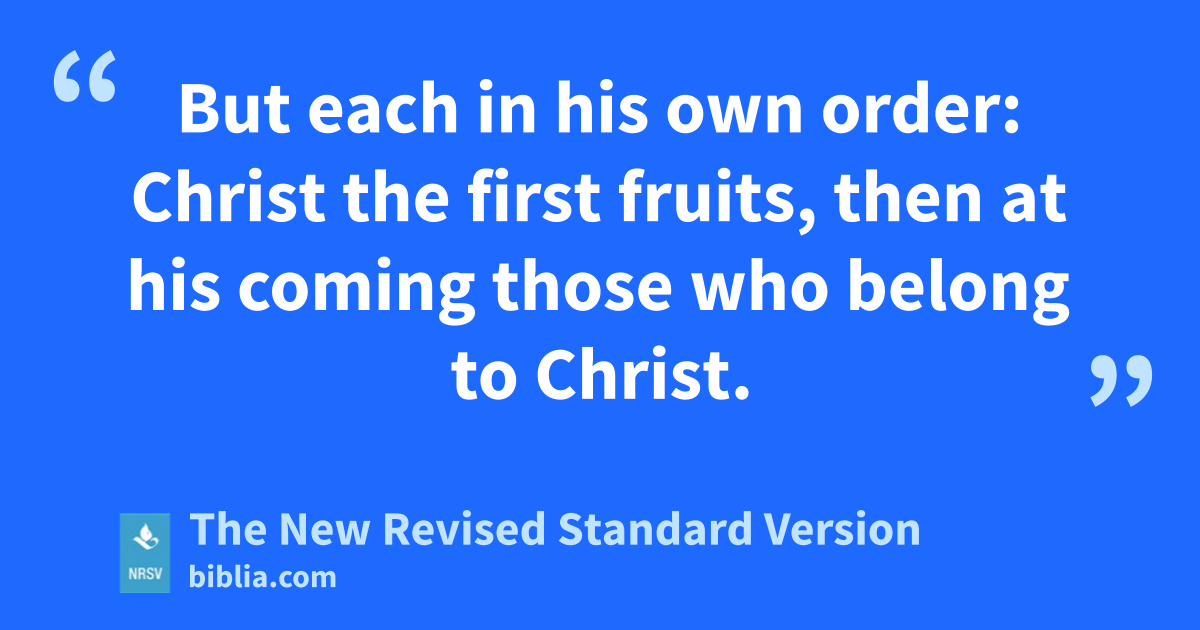 But each in his own order: Christ the first fruits, then at his coming those who belong to Christ.
